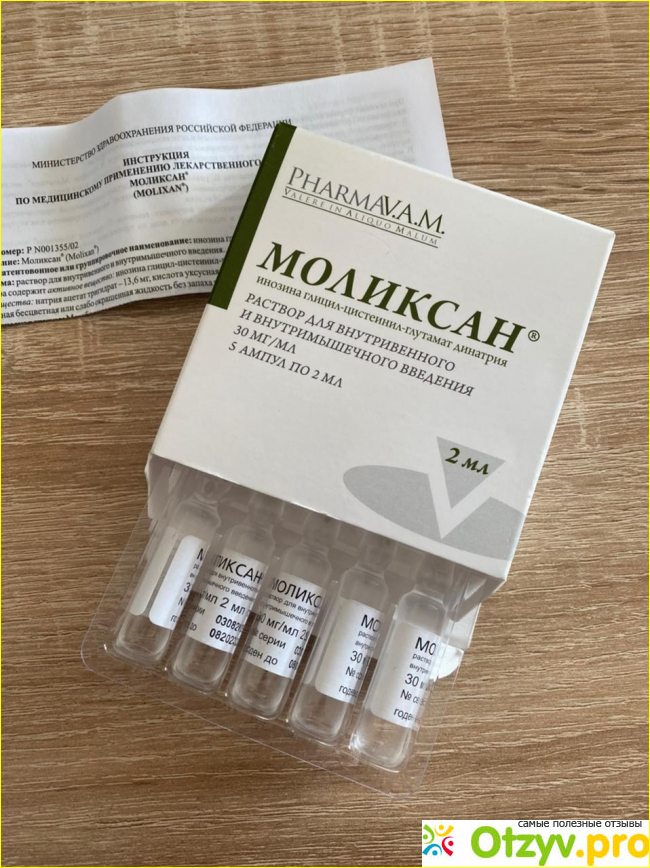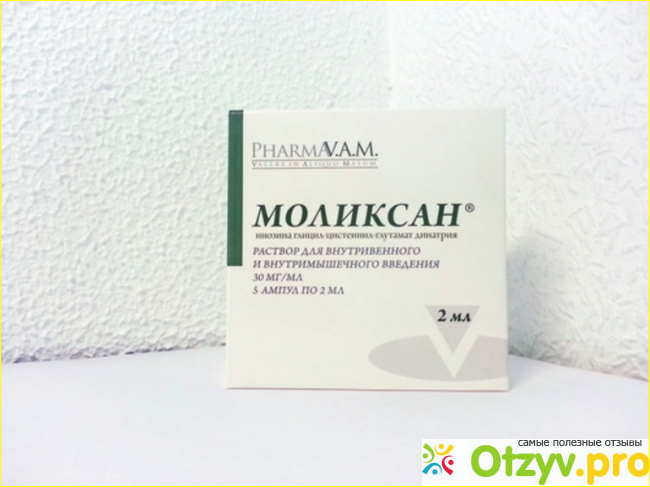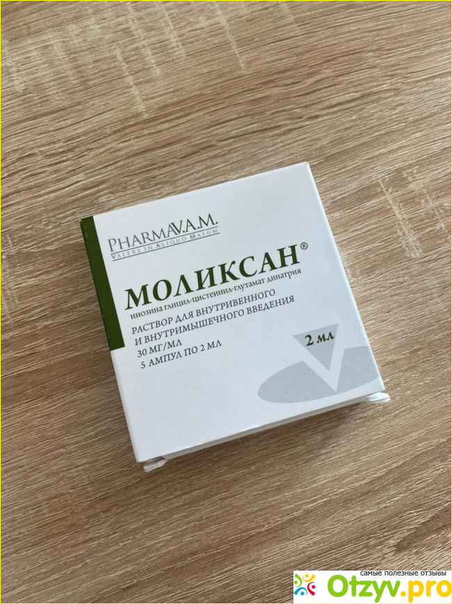 В составе средства содержится активное вещество инозина глицил-цистеинил-глутамат динатрия, выпускается препарат в форме ампул для инъекций. Относится к категории иммуномодуляторов с гепатопротекторными и противовирусными свойствами. Позиционируется как средство, при использовании которого предотвращает тяжелое течение заболевания. развития патологических процессов дыхательных путей (дыхательная недостаточность), сокращает период заболевания до одной недели (при условии, что препарат был использовать при первых симптомах заболевания). Также Моликсан используется при выраженных симптомах заболевания вирусной инфекции, для снижения степени тяжести и выраженности симптомов: одышки, температуры тела, слабости, недомогания), сокращает сроки болезни, потребности в кислороде, ИВЛ и так далее. Также Моликсан могут назначить после перенесенного заболевания, когда наступает именно постковидный синдром со всеми вытекающими обстоятельствами.