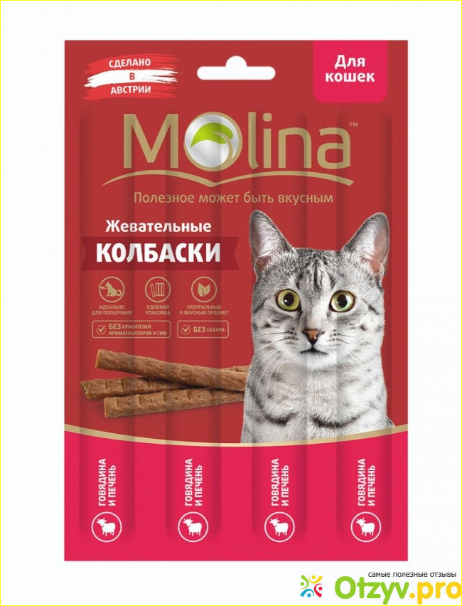 Я очень люблю своего котика, поэтому я его частенько балую вкусняшками. Я много фирм перепробовала давать ему, но именно Молина он кушает с удовольствием! Всем известный факт, что у кошек/котов настолько развито чутье к натуральному продукту, что еду, в составе которой присутствует хоть какая-то химия, они кушать не будут! Людям бы обладать таким чувством))) Но эти жевательные колбаски он лопает с большим удовольствием. Значит, состав колбасок действительно такой, какой написан на упаковке.