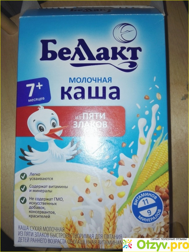 Кашка это молочная из пяти злаков, а именно в составе - молоко коровье нормализованное, мука овсяная, мука гречневая, мука кукурузная, мука пшеничная, мука рисовая, масло кукурузное, сахар, минеральные вещества и витамины.