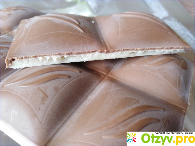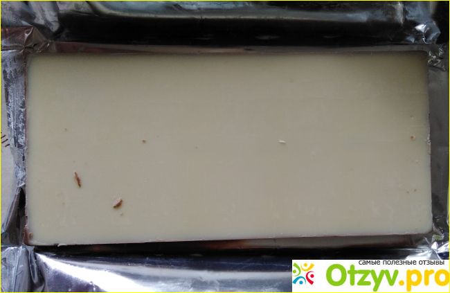 Нижняя сторона плитки гладкая, белого цвета - это белый шоколад.