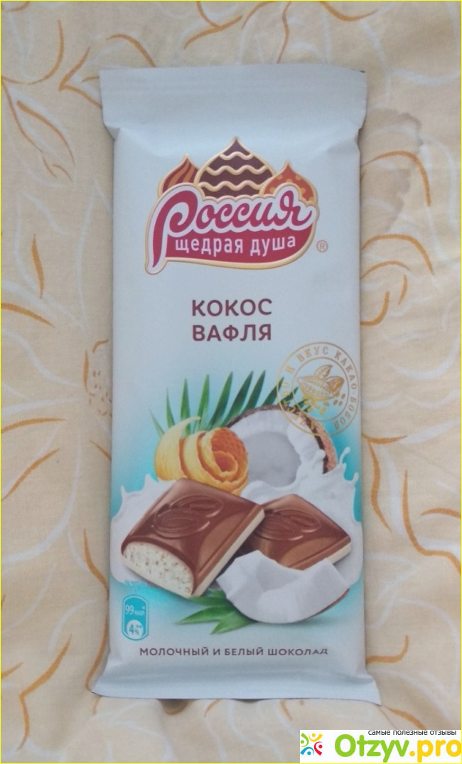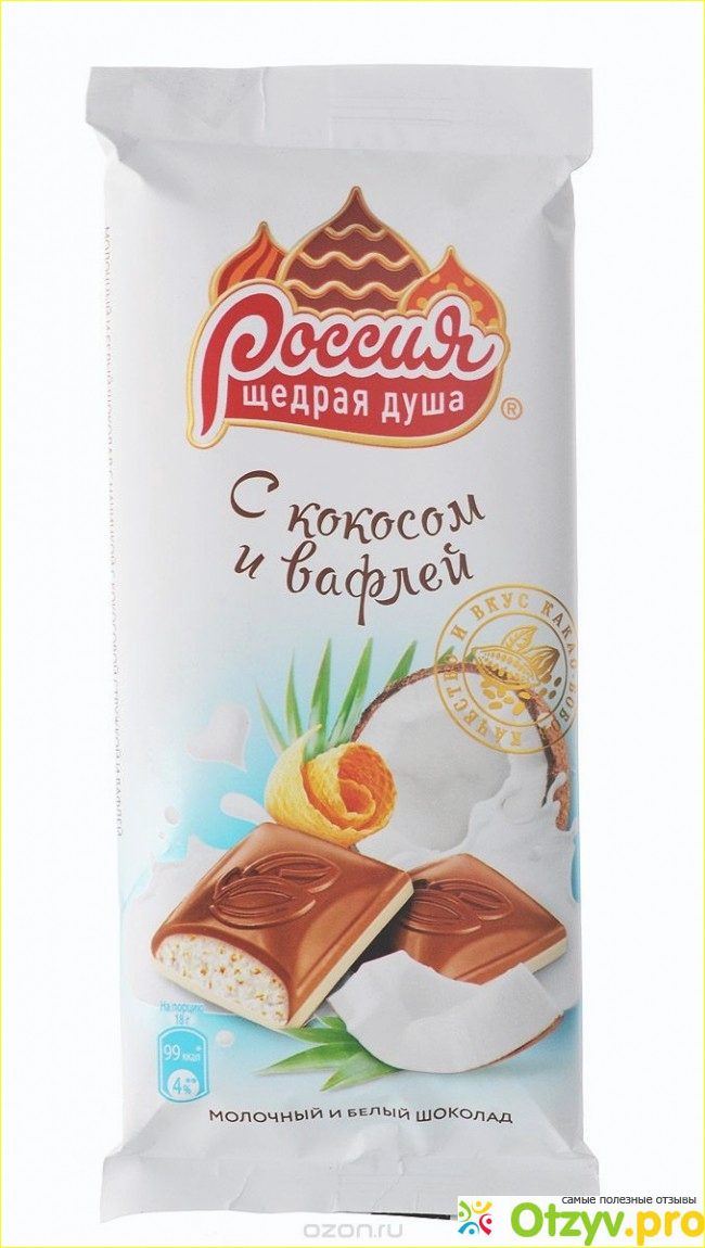 Молочный и белый шоколад Россия - щедрая душа "С кокосом и вафлей" |