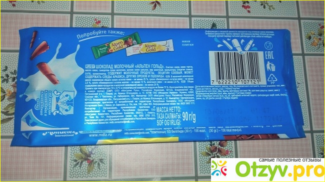 Молочный шоколад Alpen Gold Монделиз Русь |