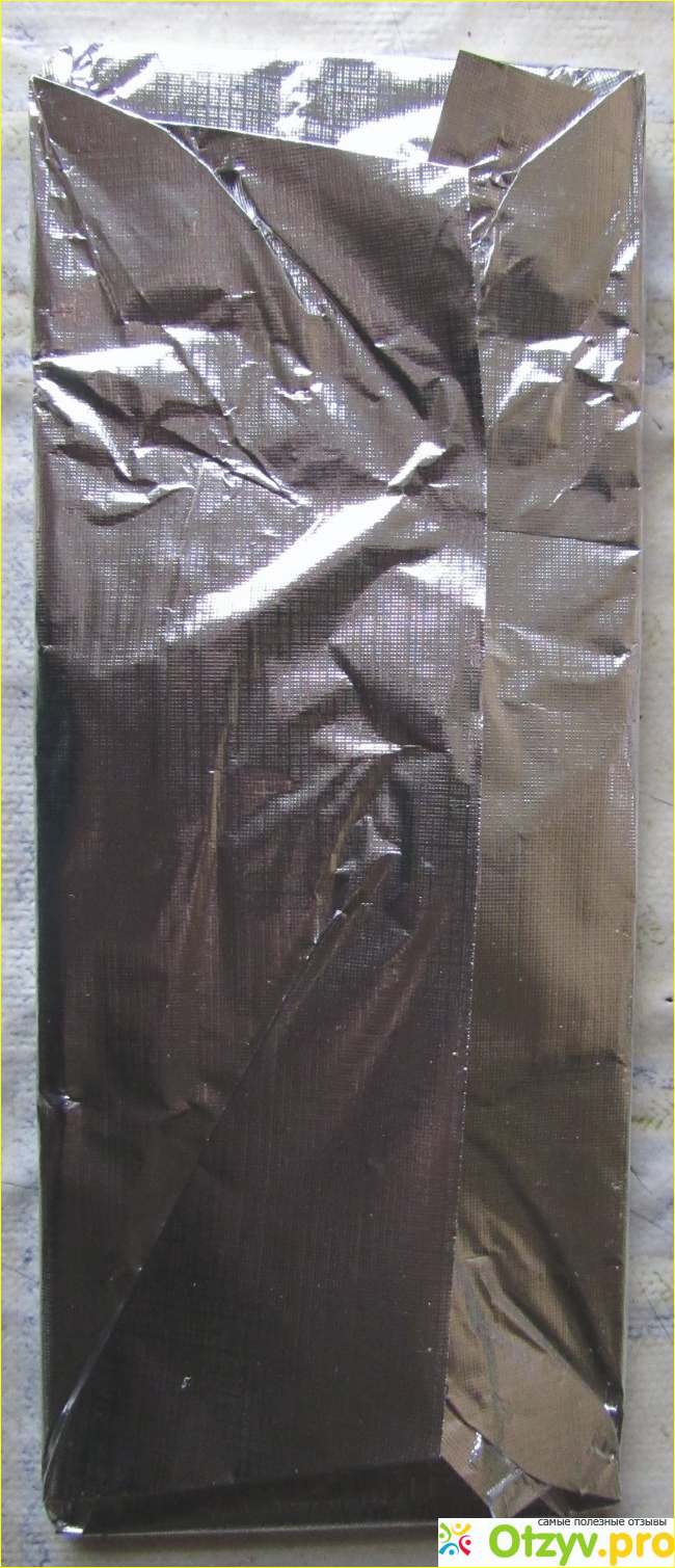 Открываем, достаем плитку. Она завернута в фольгированную бумагу не очень хорошего качества. Выглядит, в отличие от коробочки, не эстетично.