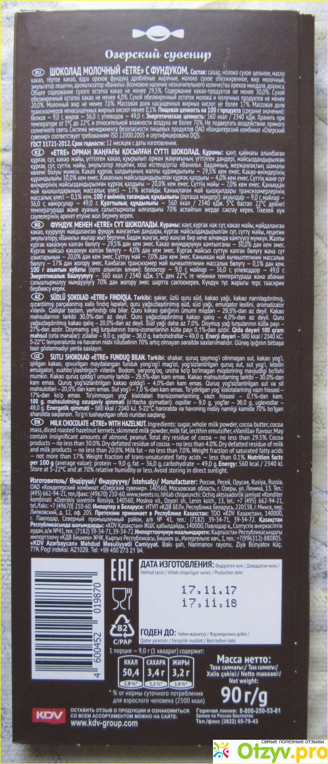 Здравствуйте, дорогие читатели! Продолжаю обзор разного шоколада и пишу сегодня об очередном презенте. Это молочный шоколад "Etre" с мелко дробленым фундуком.