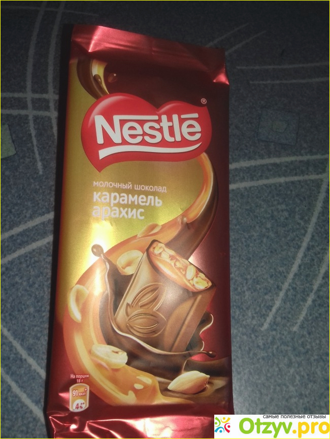 Сама шоколадка выглядит стандартно, сделана в форме плитки, сколько-то там долек в ней находится, я не считала. Оттенок приятный коричневый у нее, а начинка карамельно-ореховая. Очень вкусное сочетание получилось, очень вкусно сочетается жареный арахис и карамель, а молочный шоколад все это дело приятно обволакивает. Вкусная шоколадка у "Нестле" получилась.