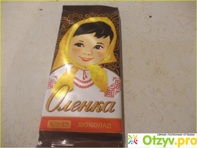 Шоколадка в простой упаковке, с изображением миленького личика девочки Аленки.