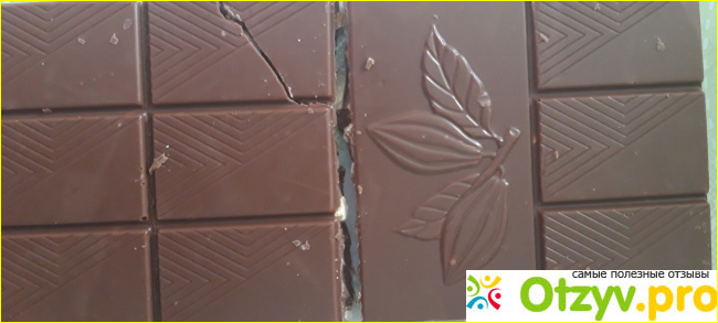 Плитка шоколада поделена на прямоугольники. Единственным украшением служат листики какого-то растения.