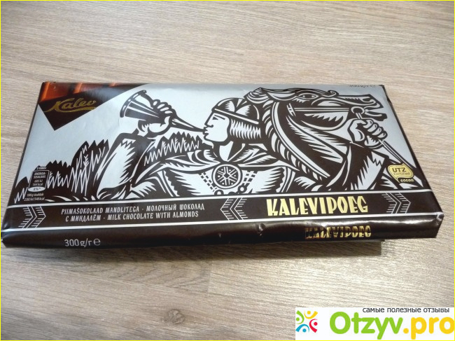 Сразу шоколадная плитка весом в 300 граммов. Она просто огромная по размерам! Оформлена без изысков. На серебристом фоне герой каких-то эстонских сказок – такие мысли у меня возникли, когда увидела эту плитку.