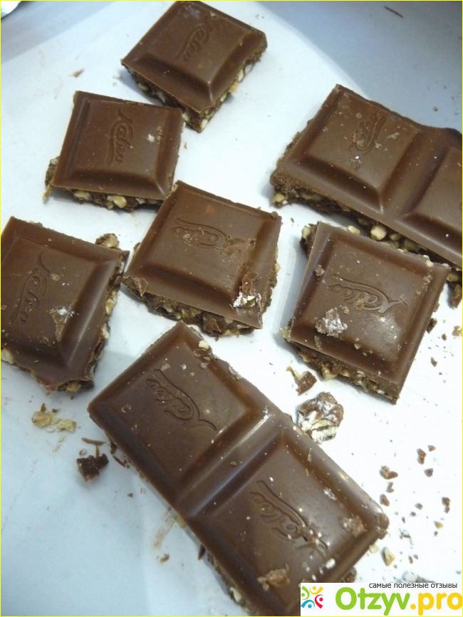 Шоколад молочный, но совершенно не приторный. Пропорции составляющих идеальные! Это настолько вкусно! Потрясающий вкус еще и усиливается наличием в шоколаде миндаля. Легкая горчинка отлично оттеняет сладость шоколада.