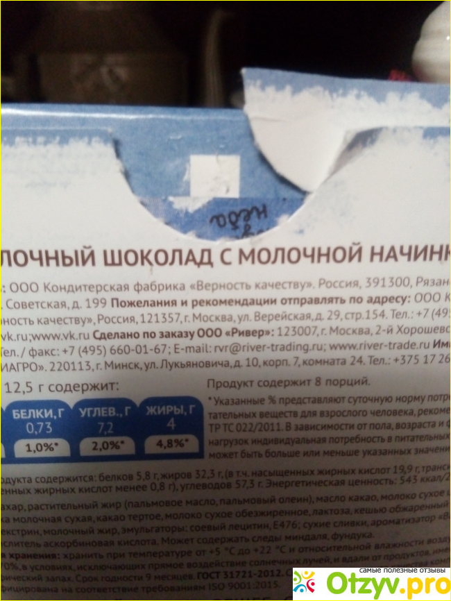 Изготавливает данный шоколад ООО "Верность качеству" в Рязанской области.