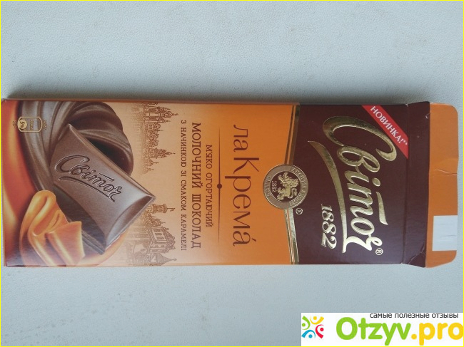 Я очень люблю разные вкусности: конфеты, печенье, вафли, шоколад. К моему счастью рынок данной продукции очень широк и разнообразен, постоянно появляются разные новинки. И в это раз мое внимание привлекла продукция ТМ Свиточ, а именно шоколад лаКрема, это молочный шоколад с начинкой со вкусом карамели, вес плитки 90г.