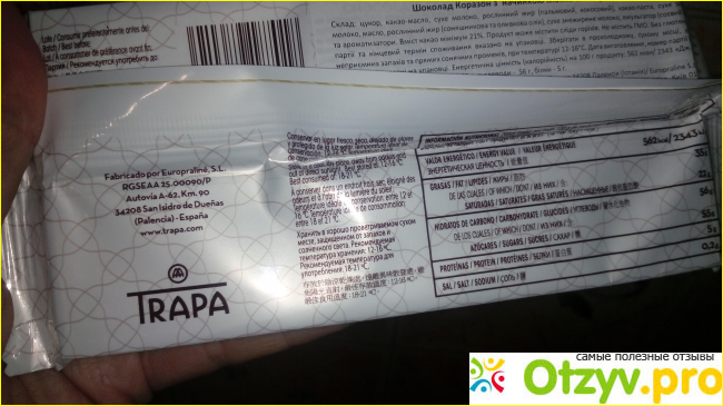 Состав меня немного огорчил, я ожидала что если шоколад испанский, то и качество должно быть лучше нашего украинского, но увы, это не так.