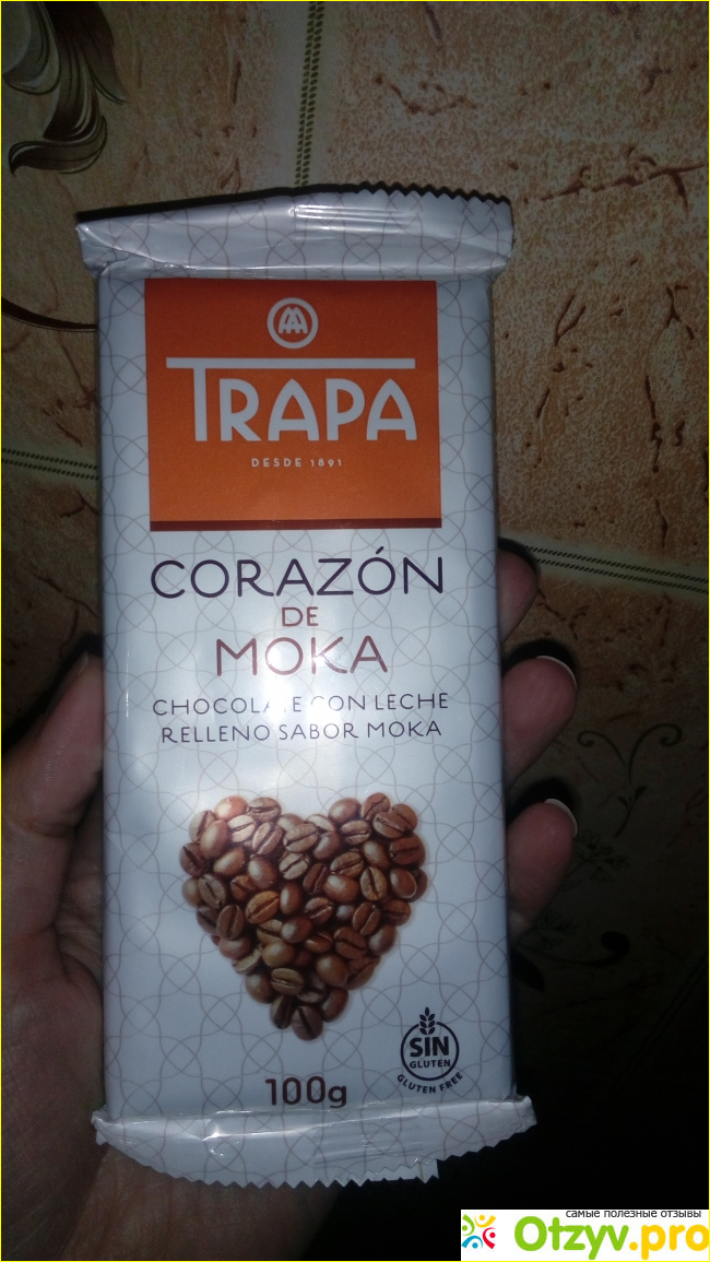 Пару дней назад решила попробовать молочный шоколад Trapa Corazon De moka, от испанского производителя. Я давно поглядывала на него в супермаркете, но как-то нерешалась купить, а на этот раз дочка уговорила и мы взяли одну плиточку.
