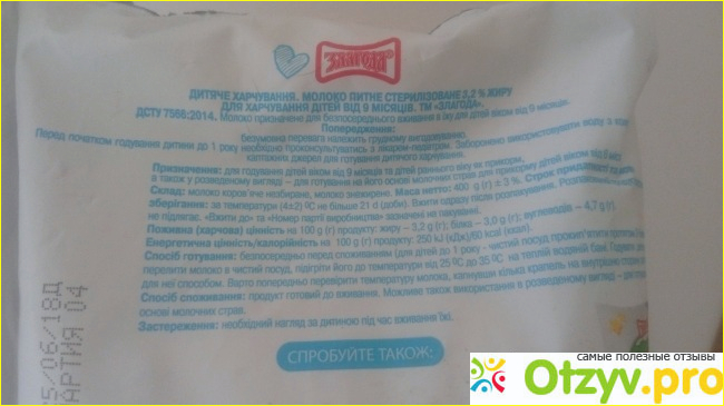 Молоко Злагода для детей очень вкусное. Оно доволи жирненький, и это не удивительно, ведь его жирность 3,2%. Молоко без каких либо привкусов и запахов.