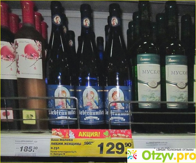 Более правильное название этого напитка, это Вино Рейнхессен "Молоко любимой женщины". Данное вино можно периодически увидеть в продаже, и оно не сказал бы, что настолько уж редкое, просто название бывает написано не по-русски, и никто не задумывается как оно переводится. Возможно, есть напитки и с русскими этикетками, то есть адаптированные под нашего пользователя, если можно так сказать, но мне такие не попадались.