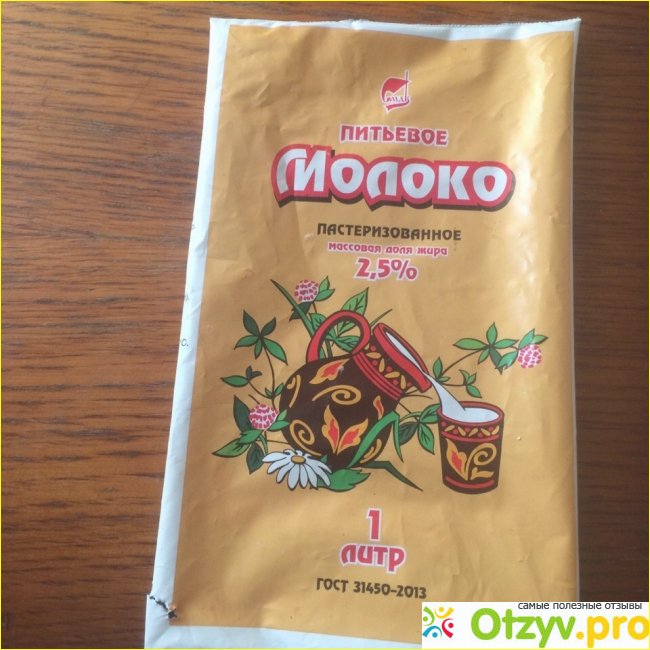 Молоко продается в самой обычной мягкой упаковке. На которой изображены полевые цветы и кувшин с молоком.