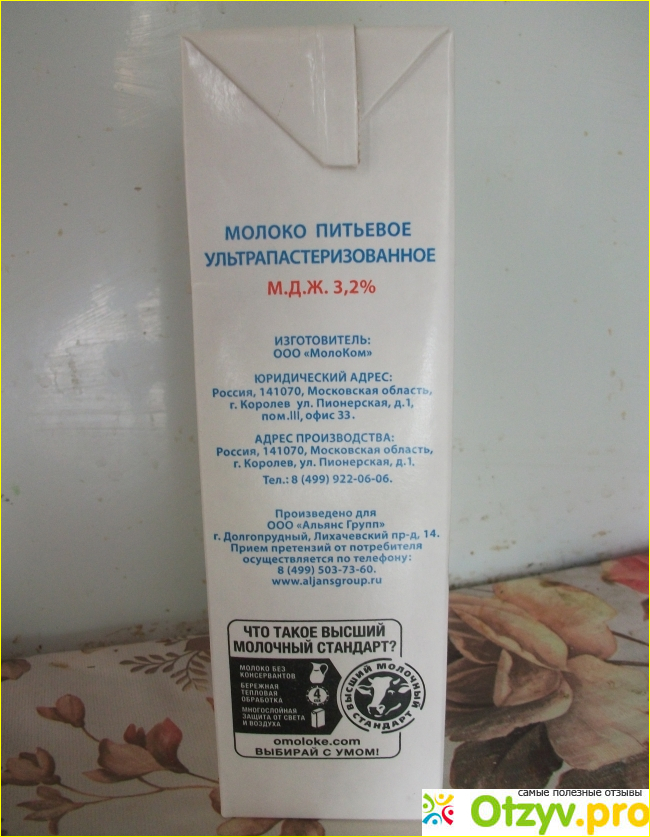 Она бывает разной разных коров, и даже у одной и той же сильно зависит от кормов, условий содержания, в среднем от 3,4 до 5%. Мы на диете не сидим, обезжиренное молоко, на мой взгляд, не так вкусно. Но это дело вкуса. Здесь оно приведено к стандарту, в цельное молоко добавлено немного молока обезжиренного, как видно, совсем немного, чтобы в разных пакетах жирность не отличалась существенно. Это - обычная практика. Молоко ультрапастеризованное. Поговаривают, что такое лучше не брать. Разберемся.