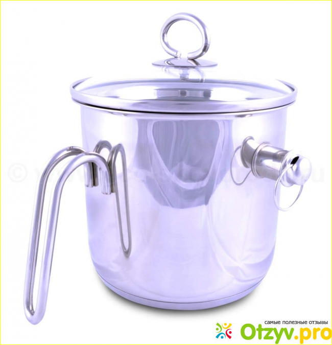 Данная молоковарка сделана в России, то есть отечественного производства, материал изготовления нержавеющая сталь. Важно то, что она снабжена двойным дном, в носик следует заливать обычную воду, лучше использовать воду из-под установленного фильтра, чтобы там не образовывалась накипь или же брать талую воду. Ну и соответственно в саму молоковарку на дно наливается молоко. В носик вставляется свисток, и после этого можно идти заниматься своими делами, пока готовится еда. Например можно одеться, почистить зубы, когда вода в молоковарке закипает, то сразу раздается свист, таким образом, можно употреблять молоко. После этого можно подойти к плите, забросить другие ингредиенты, например крупы, и тому подобное. Далее следует подойти через определённое время и уже снимать готовую кашу.