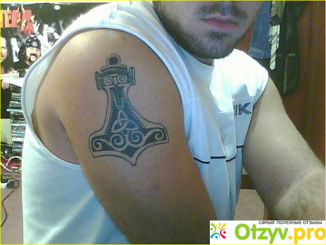 Витиеватый узор символизирует мужское начало, крепость духа, безграничную силу и стойкость. Те, кто носил такой символ отличия, выделялись среди всех. Такое изображение говорит о том, что его обладатель достойный сын своего отца. Эти воины не боялись ничего. Смело шли в бой, верили в победу, не знали страха. Они верили, что молот, принесет им удачу. Современный мир тоже полон героев. Ну, а татуировка «Молот Тора» будет прекрасным оберегом. Расположение и форма рисунка также влияет на смысл, который хочет донести обладатель татуировки.