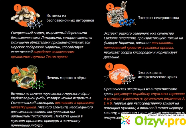 Морские безпозвоночные литорины, входящие в состав БАДа, выделяют особых секрет, способствующий выработке тестостерона.