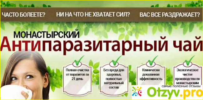 Именно так и должен поступать нормальный человек. Я же предпочла заниматься самолечением. Сейчас очень модно стало лечить многие болезни неофициальными методами. Хоть они зачастую оказываются даже дороже традиционных лекарственных препаратов, то, видимо, люди уже совершенно перестали доверять официальной медицине. Да к тому же привлекает то, что такие препараты обычно имею натуральный состав, а значит, абсолютно безопасны для здоровья человека. Вот только помогают ли такие препараты вообще? Это был вопрос, даже я сомневалась в этом. Но активная реклама нового антипаразитарного препарата растительного происхождения не могла не привлечь мое внимание. Речь идет о Монастырском чае от паразитов. В состав этого чая входят самые натуральные и экологически чистые компоненты: одуванчик, зверобой, цветки ромашки, ягоды и листья черники, лопух, плоды шиповника, полевой хвощ. Все составляющие являются простыми антиоксидантами, которые помогают укреплять общее состояние организма. Но это лишь некоторые компоненты. Полный состав чая нигде и никогда не указывают, так как он приготовлен по рецептам монахов, ведь они с давних пор занимались лечением лекарственными травами.