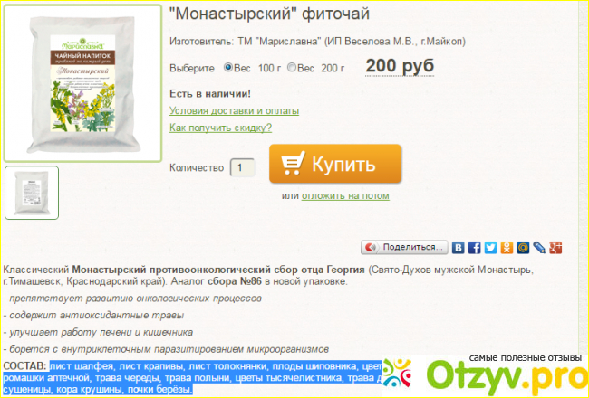 Спрашиваете, в чем подвох? А ни в чем! Это честная и реальная цена этого фитосбора, без мошенничества и накруток. Сам интернет-магазин проверен временем, одна моя хорошая знакомая пользуется его услугами уже не первый год, и очень довольна их продукцией.