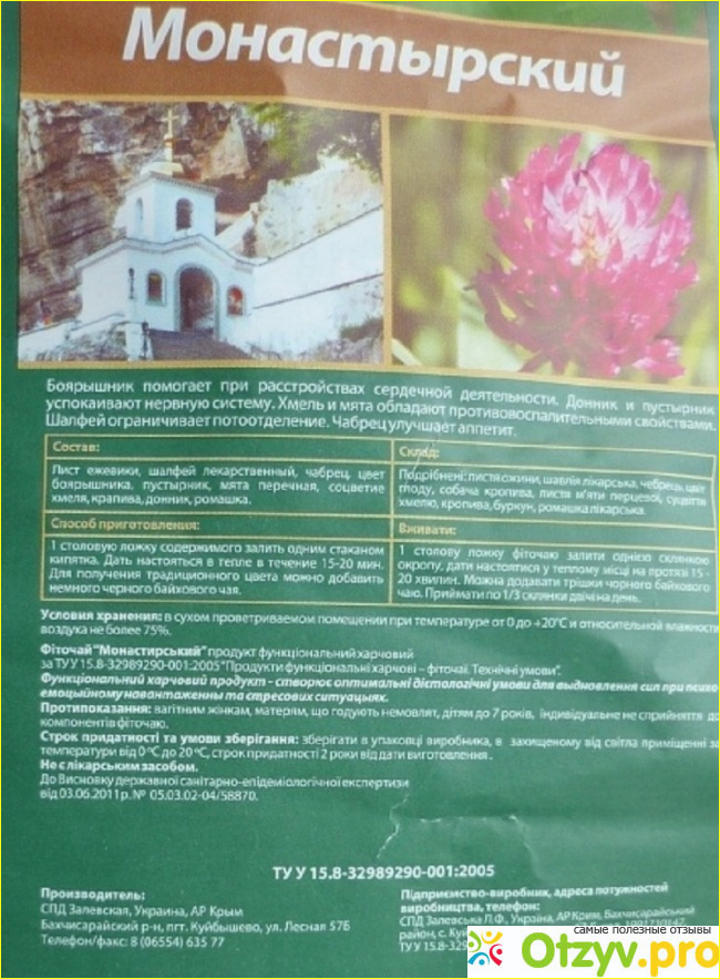 Я ожидал какого-то чуда, а в пакете была обычная трава, вернее несколько видов измельченной травы, и как было написано в инструкции, это уникальная штука. Чистейшие Алтайские травы и прочая, прочая.. Я активно взялся за употребление данного препарата, со строжайшим соблюдением инструкций. пил три-четыре раза в день, все как положено. Увы, я не заметил каких-то изменений в своем организме даже через месяц. Но, самовнушение великая вещь-я стал курить гораздо меньше. Так что пользу от монастырского чая для себя я получил. Боле того. внимательно ознакомившись с составом, я понял. что смогу создать некое подобие этого чая самостоятельно., в летнее время. И тогда мне не придется платить тысячи за свое оздоровление. Впереди лето и я всерьез планирую получить Монастырский сбор самостоятельно. И для меня вовсе неважно, что травы эти , я соберу не на Алтае. а в Самарской губернии.