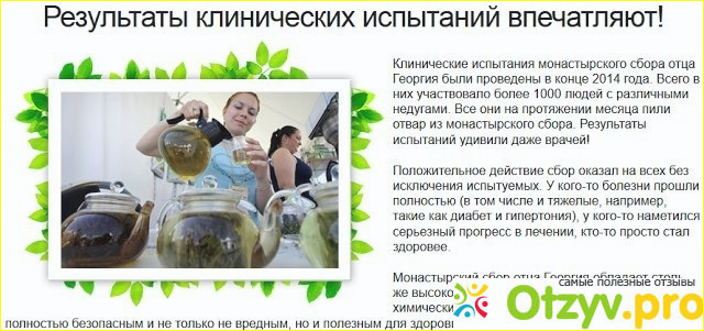 Вот уже года три употребляю этот чай, он вылечил меня от такой болезни как синдрома раздраженного кишечника, но пить его я так и не перестала потому что прочла про него много полезных действий. Он лечит такие болезни как сахарный диабет 1 или 2 типа;гипертоническая болезнь;атеросклеротическое поражение сосудов;болезни мочеполовой сферы (цистит, уретрит, пиелонефрит, вагинит);гормональный дисбаланс (включая менопаузальные проявления, ПМС, заболевания щитовидки и прочие);гастрит и язвенная болезнь;депрессия, синдром хронической усталости;миома матки;артрит и остеохондроз;бронхиты, пневмонии;хронические заболевания сердца;избыточный вес или ожирение;болезни печени и желчного пузыря;вегето-сосудистая дистония;нарушения менструального цикла;Многие мои друзья и родственники стали пить этот сбор и во всех очень положительные отзывы о этом продукте. Даже есть много рекомендаций врачей о использовании этого сбора.
