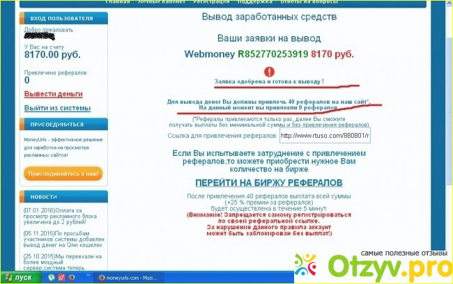 Для этого нужно 40 рефералов, но при регистрации в правилах сайта совершенно об этом не говориться. Там с рефералов