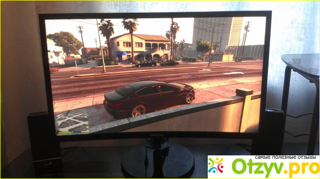 Однако потом, когда стали конкретно глаза уставать, и увидели что изображение далеко не четкое, решили накопить денег и сделать обновку. Конечно хотелось купить что-то оригинальное, из новомодного варианта. Сильно долго не выбирали, просто пошли в компьютерный супермаркет, и среди всего прочего нашли samsung с диагональю 24 дюйма. Монитор понравился не только своей диагональю, но и загнутой формой экрана, а также особенностями дизайна. Может бы мы выбрали и побольше модель, но эту нам посоветовали, и времени тогда особенно не было. Возможно, мы тогда бы обратили внимание на единственный недостаток, который появился уже после покупки, и которые проявлялся в заветах, когда монитор отключался.