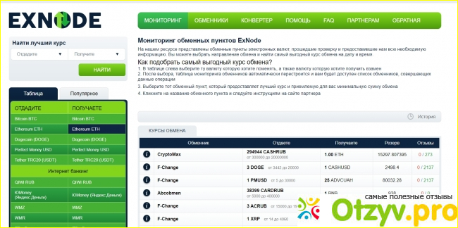 Мониторинг обменных пунктов BestChange. Как безопасно и выгодно сделать обмен валют | BestChange - мониторинг автоматических обменных пунктов электронных валют | KursoFF.com мониторинг обменников обзор, отзывы, как произвести обмен валют | Как поменять деньги в интернете Мониторинг обменных пунктов онлайн. Обмен валют, курс валют. | Exnode ru - Мониторинг обменных пунктов электронных валют. Инструкция по пользованию порталом. |