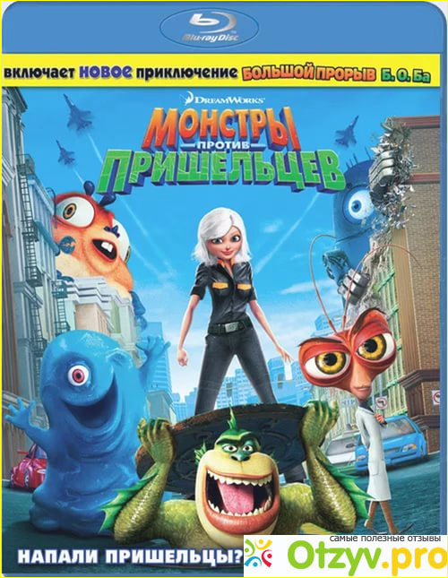В этом мультфильме все это есть. Но я выбрала именно "Монстры против пришельцев" потому, что этот мультфильм продается в формате Blu-ray.