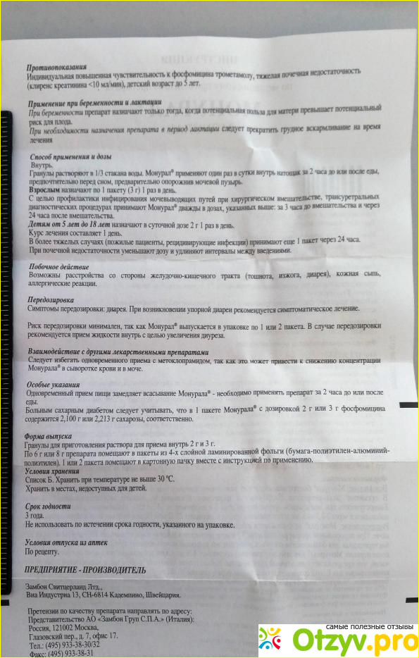 В следующий раз, как только у меня начались незначительные болевые ощущение того же характера, я сама решила принять антибиотик Монурал.
