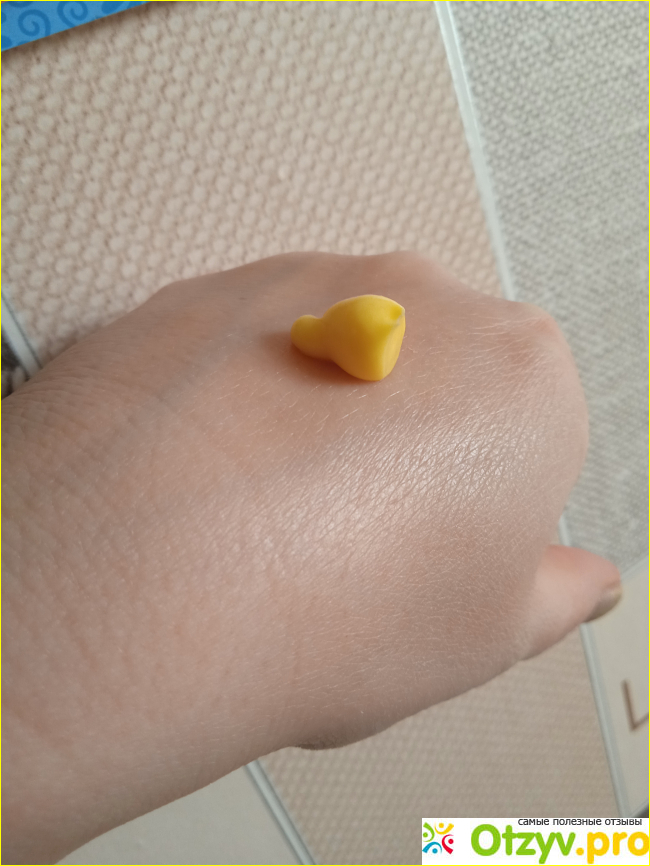 Крем приятного желтоватого цвета, пахнет приятно и совсем не морковью.