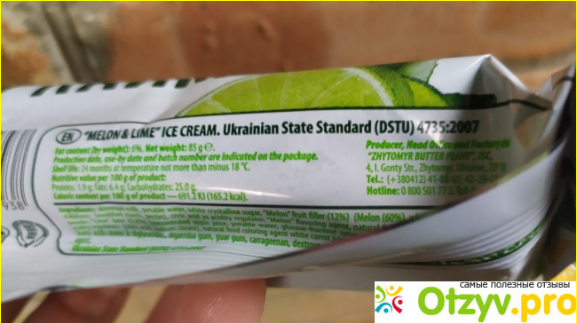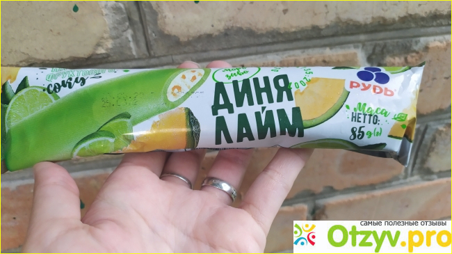 На этот раз решила попробоватьр мороженное от фирмы Рудь "Дыня-лайм". Я не очень люблю замороженный сок, предпочитаю жирненькое мороженное, но мне на картинке понравился внешний вид мороженного, поэтому решила попробовать.