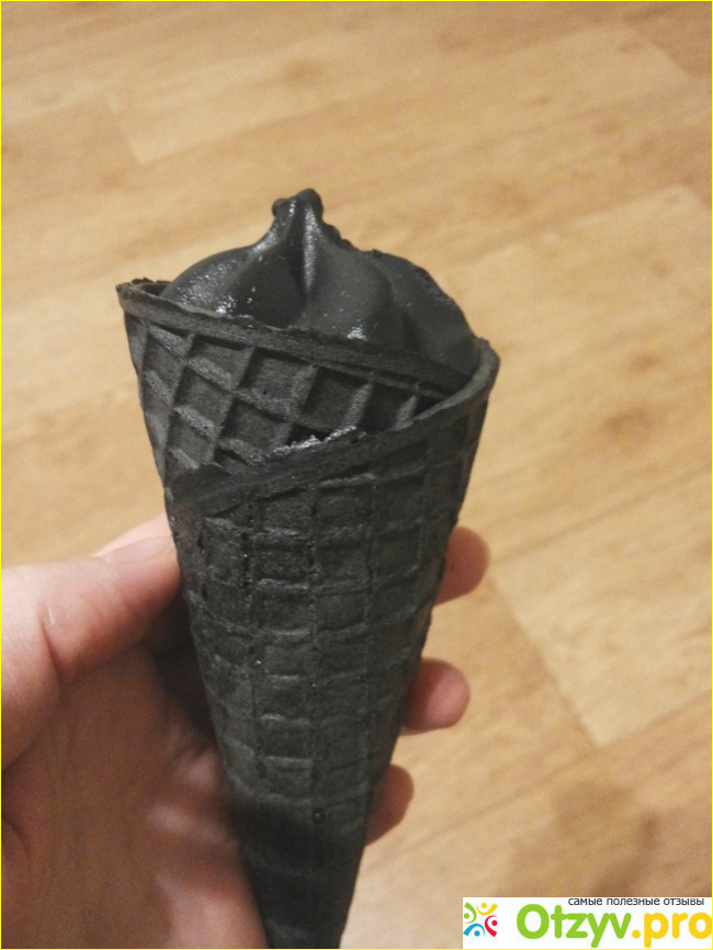Вся изюминка в самом мороженом, оно тоже черное, на вкус сладкое, отчетливо слышна смородина. Сочетание довольно обычное. И признаюсь, я слегка была разочарована в данном десерте, думала, что и на вкус оно будет каким-то другим.