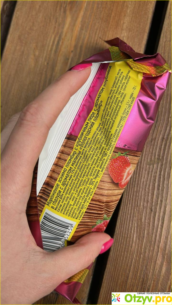 Пломбир более светлого оттенка. чем сама глазурь, но оба цвета сочетаются друг с другом. Больше всего в мороженом люблю сам пломбир, поэтому всегда сначала объедаю шоколад. Шоколад сам по себе вкусный, нет дешманского или химозного вкуса. По вкусу сладковатое, но в меру, мне понравилось. Пломбир понравился больше всего. Клубничное пюре офигенное, после него остается приятное послевкусие. Что понравилось еще, так это то, что состав натуральный, прям реально натуральный - такого в современном мире редко найдешь. Ловите фото состава: