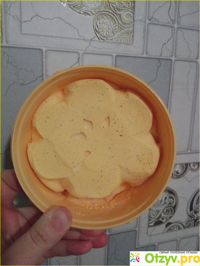 Вот так выглядит мороженое при открывании- собственно ярко желтое с черными вкраплениями.