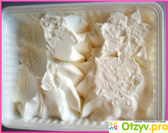 Мороженое белого цвета, в меру сладкое. Ощущается аромат ванили.