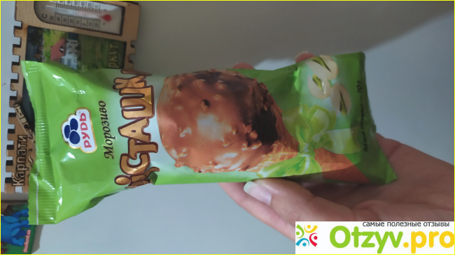 Сегодня купила фисташковое мороженое, не смотря на холодную погоду, очень уж оно вкусное.