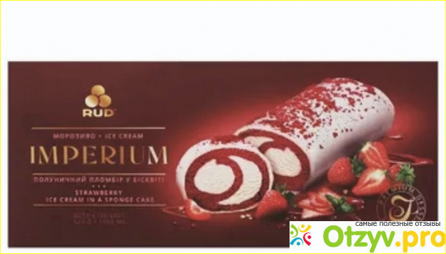 По сути это бисквитный рулет, пломбир и клубничный джем, но сочетание получается очень вкусное. Рулет можно просто брать и нарезать, как обычный бисквитный рулет. Кушать тоже удобно ложечкой, ничего не распадается, так что у вас во рту оказывается все сразу. Бисквит очень нежный, мягкий, но не расползается. Клубничный джем выглядит и на вкус как натуральный, попадаются кусочки клубники. Пломбир как всегда у Рудь на высоте: жирный, сливочный, очень нежный и приятный. Рекомендую.