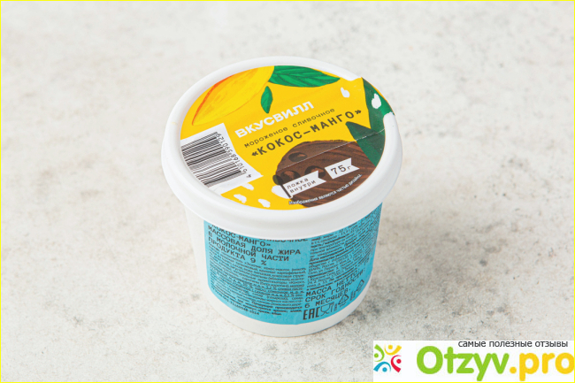 Отзыв на мороженое сливочное кокос-манго Вкусвилл 75 грамм.