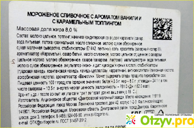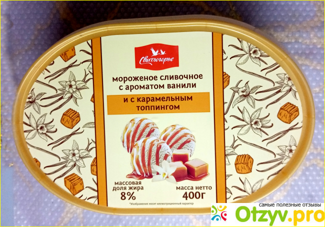 Массовая доля жира этого мороженого 8 %, не знаю, хорошо это или плохо. Кажется, это норма для сливочного мороженого.