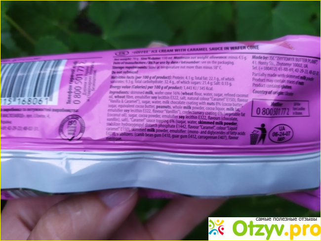 На упаковке указана информация о производителе, сроки и условия хранения мороженного, ну и конечно же его состав.