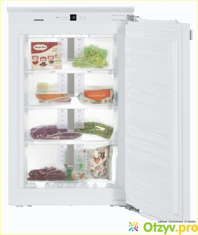 Будь то вместительный морозильный шкаф на 204 литра, или компактное решение на 95 литров – они идеально интегрируются в фасад любой кухни. · Отдельностоящая морозильная камера, преимущество которой – в мобильности. Устройство можно разместить там, где вам удобно. Габариты и объем камеры Бытовые морозильные камеры могут быть разных размеров. Выбирая этот тип устройств, ориентируйтесь на ваши потребности и количество продуктов, которое планируете хранить. В зависимости от высоты морозильной камеры, она может быть укомплектована 3-7 отсеками для хранения. · Высота 85 сантиметров: 3-4 ящика для продуктов, включая увеличенный контейнер SpacePlus с прозрачным корпусом. Такая морозилка отлично поместится под столешницей. · Высота 125 сантиметров: устройство на 5 отсеков. · Высота 154 сантиметра