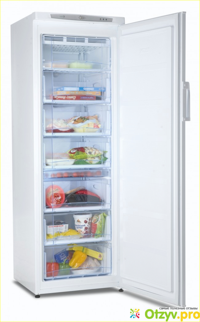 Выставляй нужную температуру, а тут она максимум -18 и загружая. Конечно же, в первый раз я от счастья загрузила ее по полной, так вот морозилочка себя отлично показала, справилась с заморозкой большого количества продуктов, причем довольно быстро и главное тихо! Внутри аж семь отделений с прозрачными шторками, ничего не останется не замороженным, ничего не потеряется.) Итак, как я и говорила, семь отделений внутри, самое верхнее просто полка с откидной шторкой, остальные шесть выдвижные ящики с ручками по бокам, кстати, удобно вытаскивать, продумали ребята, молодцы. Немного смутило, что ручка на дверце прикручена, обычно у Норда ручка-выемка на дверце, но тут иначе. А смутило потому, что думала, что хлипкая она, а оказалось очень даже крепкая, хоть и пластиковая. Дверца морозилки открывается легко, без усилий, закрывается тихо, уплотнители мягенькие и ровные, холод держит замечательно и это радует. После года эксплуатации я поняла одно, свою морозилку ни на какую другую модель не променяю, довольна и всем рекомендую.