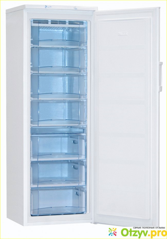 Смотрели разные модели отдельностоящих морозильных камер, но понравиться по всем параметрам, в том числе и по цене морозильник Nord ДМ 158 010. Агрегат этот имеет средние размеры, с виду не большой, но внутри очень вместительный, за счет того, что поделен на шесть отделений, три из который просто полки с откидной шторкой, а еще три выдвижных ящика с ручками по бокам. Морозит до -18 , для быстрой заморозки и длительного хранения вполне достаточно.