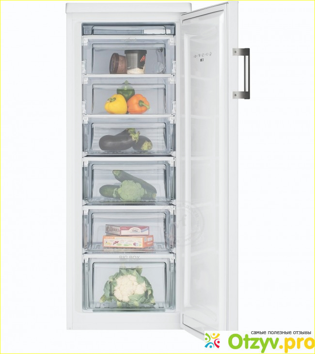Морозильник с шестью отсеками, вмещает в себя большое количество замороженных продуктов.