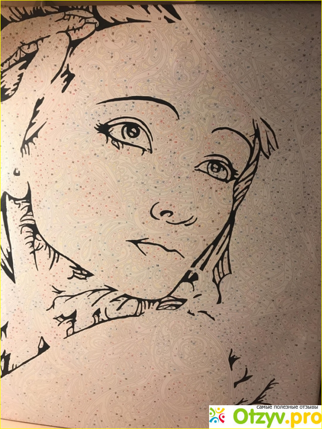 Кисти разного объема ворса. В процессе работы пообтрепались, но не сломались, благодаря своей крепкой деревянной ручке. Ворс отлпичный, не выпадает, хорошо моется водой. Рисунок довольно высокого уровня сложности, с которым под силу справиться кропотливому и терпеливому художнику. Для меня рисование было сродни раскрашиванию мандалы. Очень успокаивающе. Мой любимый момент когда рисунок уже начинает проявляться, прорисовываются основные черты. Картина получилась современная, стильная на мой взгляд. Прекрасно вписывается в любой интерьер. Я оформила мою работу в багет и теперь она украшает мою комнату. Рекомендую как отличный подарок всем любителям раскрасок.