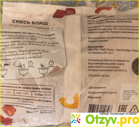 А это борщ "Перекресток". Выглядит так, как будто его уже ели. Ну серьезно, овощи такого отвратительного вида, а ведь стоит эта смесь даже дороже.